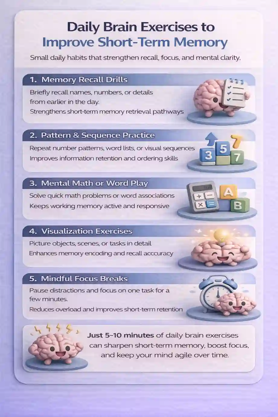 This guide breaks down daily brain training exercises specifically designed to improve short-term memory, explaining why they work, how to practice them consistently, and which common habits quietly limit progress. The goal is simple: practical improvement you can feel in everyday thinking, not abstract brain training claims.